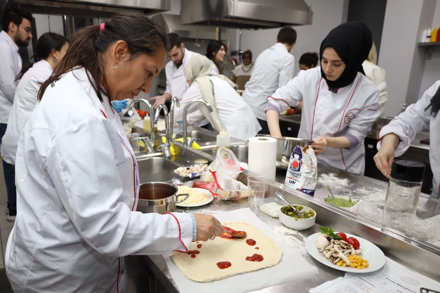 KOCAELİ (İGFA) - Kocaeli Büyükşehir Belediyesi Beyaz Kalpler Eğitim ve Gelişim Merkezi’nde aşçı yardımcılığı eğitimi alan öğrenciler, TÜBİTAK personeline pizza yapımını adım adım gösterdi. Etkinlik hem verimli hem de oldukça keyifli geçti. Kocaeli’nde gençlere yönelik pek çok yatırımı hayata geçiren Kocaeli Büyükşehir Belediyesi, kentin geleceğini onlarla birlikte şekillendiriyor. Bu kapsamda Büyükşehir’in uyguladığı projelerden biri de, gençlerin geleceğe ışık tutmasını sağlıyor. Büyükşehir Belediyesi tarafından hizmete alınan Beyaz Kalpler Eğitim ve Gelişim Merkezi, 14-18 yaş arasında eğitim hayatına ara vermek zorunda kalan ve dezavantajlı grupta yer alan gençleri yeniden eğitim ve sosyal hayata kazandırmayı amaçlıyor.