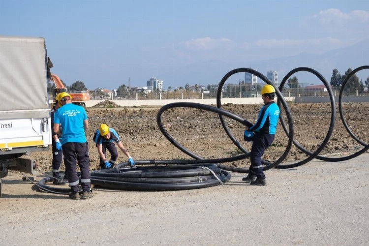 Kurulacak olan konteyner kentlerin altyapı imalatlarına devam eden ekipler, 'Öncelikle Adıyaman ilimizde kurulacak olan konteyner kentin altyapısını sıfırdan yapmaya başladık. Yoğun şekilde sürdüğümüz altyapı çalışmalarının sonuna geldik. Bugün ise Büyükşehir Belediyesi tarafından Hatay İskenderun’da depremzede vatandaşlarımıza hizmet edecekkonteyner kentin altyapı çalışmalarını başlattık. Kısa sürede tamamlayacağımız çalışmalar ile vatandaşlarımızı sorunsuz şekilde içme suyu ve kanalizasyon hatları ile buluşturacağız” ifadeleri kullanıldı.
