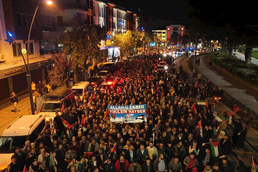 Siyonist işgal rejiminin başta Filistin’in Gazze şehri olmak üzere diğer şehirlere yaptığı saldırı sonucu çok sayıda Müslüman şehid edildi. Yaşanan katliamlara yeğki göstermek amacıyla Kılıçaslan meydanında toplanan kalabalık, Mevlana meydanına sloganlar eşliğinde yürüdü. İşgalci siyonistlerin Filistin aleyhine slogan atan halk, Filistinli mücahitlerine de destek sloganları attı. Mevlana meydanında toplanan kalabalık siyonist katillerin bayrağını yakarak tepkilerini gösterdi.