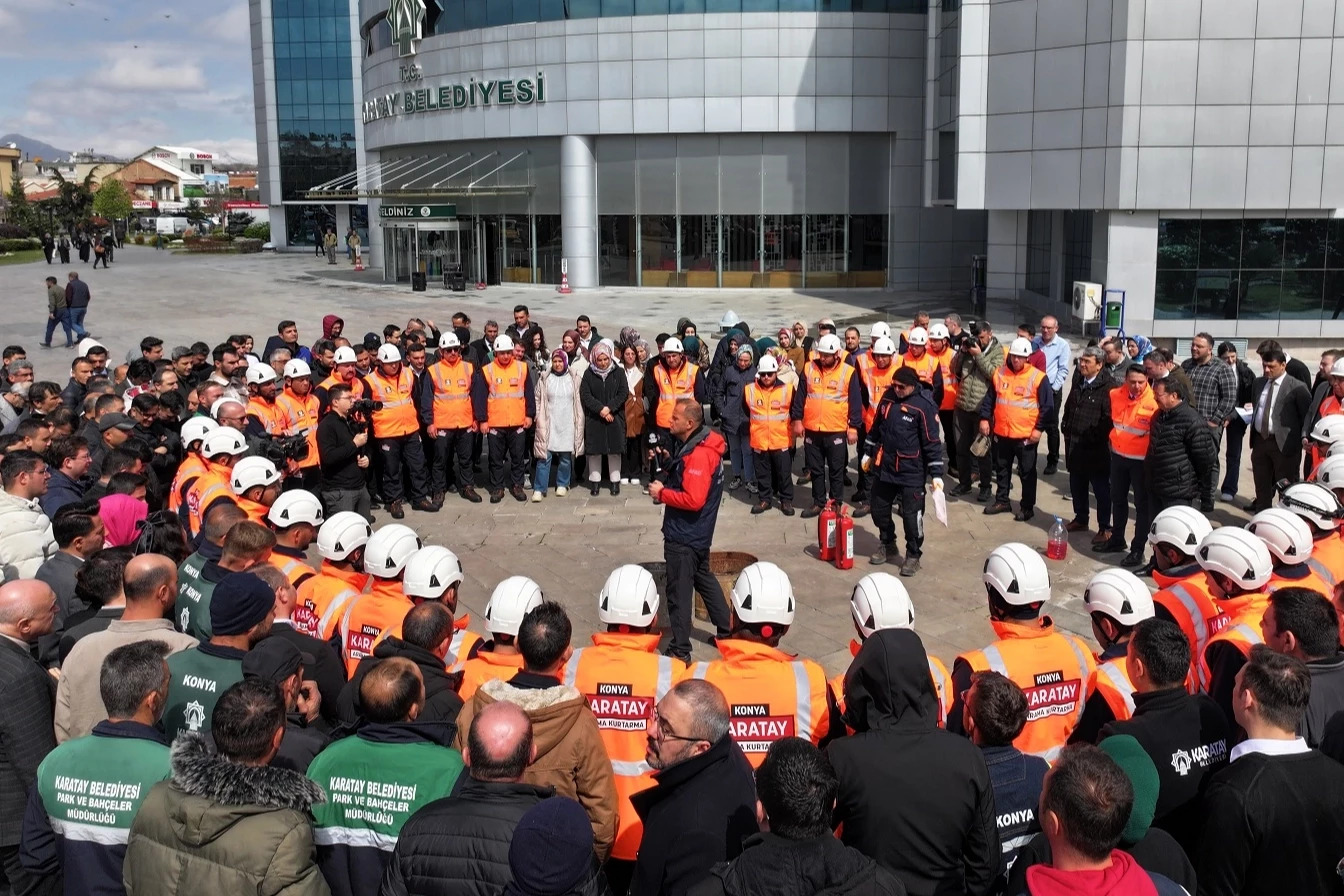 Konya'da Karatay Belediyesi, AFAD Konya İl Müdürlüğü ile iş birliği yaparak personele “Afet ve Yangın Farkındalık Eğitimi” düzenledi. Teorik eğitim, AFAD Arama Kurtarma Birim Şefi Serdar Gencer tarafından verildi.