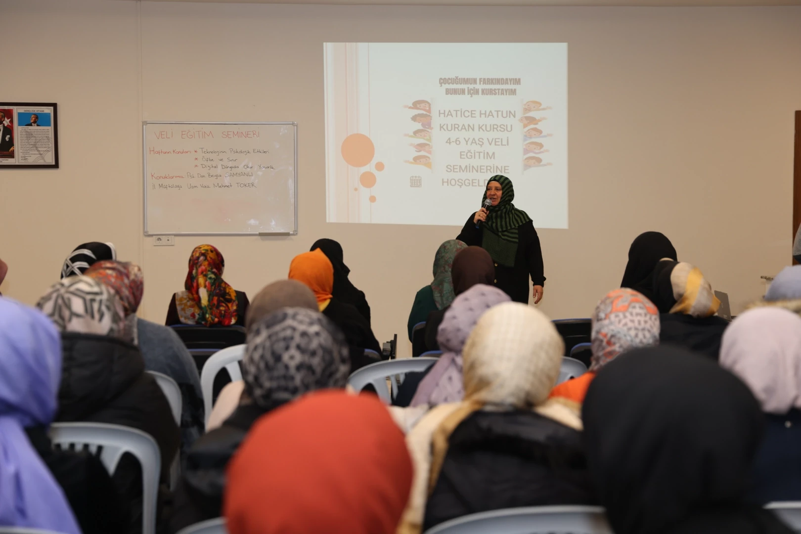 Konya Selçuklu Belediyesi Hatice Hatun Çocuk Mektebi’nde ailelere yönelik olarak “Çocuğumun farkındayım bunun için kurstayım” projesi kapsamında eğitim semineri düzenlendi.