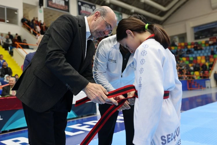 Konya'da Selçuklu Belediye Başkanı Ahmet Pekyatırmacı, Selçuklu Belediyespor Kulübü’nde Tekvando branşında eğitim gören sporcuların kuşak heyecanına ortak oldu.