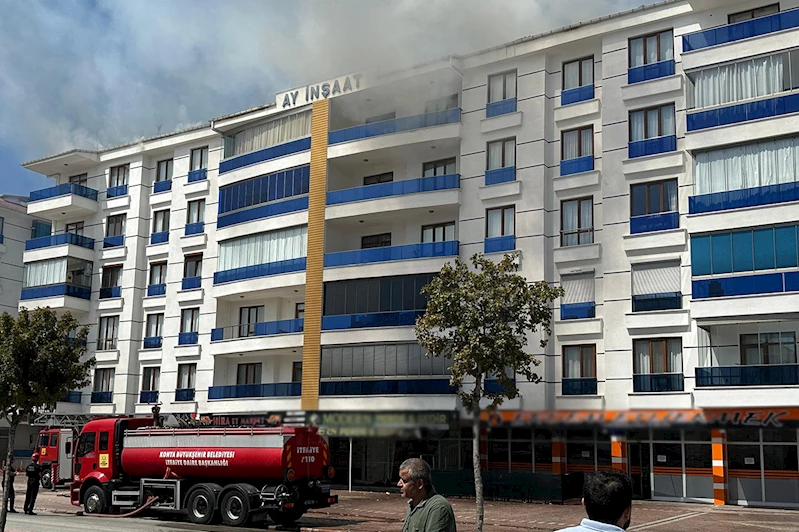 Karatay ilçesi Fetih Caddesi'nde bir binanın çatısında yangın çıktı.