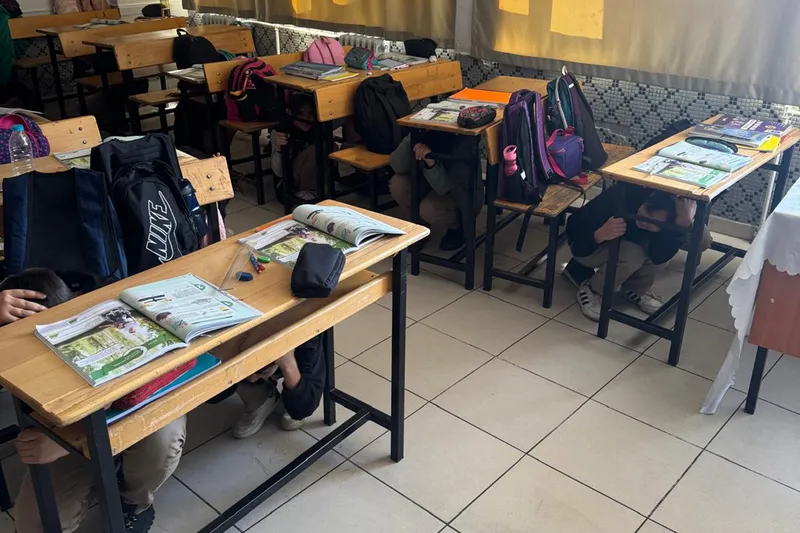 Konya’daki okullarda da uygulanan tatbikatta, öğrenciler alarm sonrası sınıflarını kontrollü şekilde tahliye ederek güvenli toplanma alanlarına yönlendirildi.