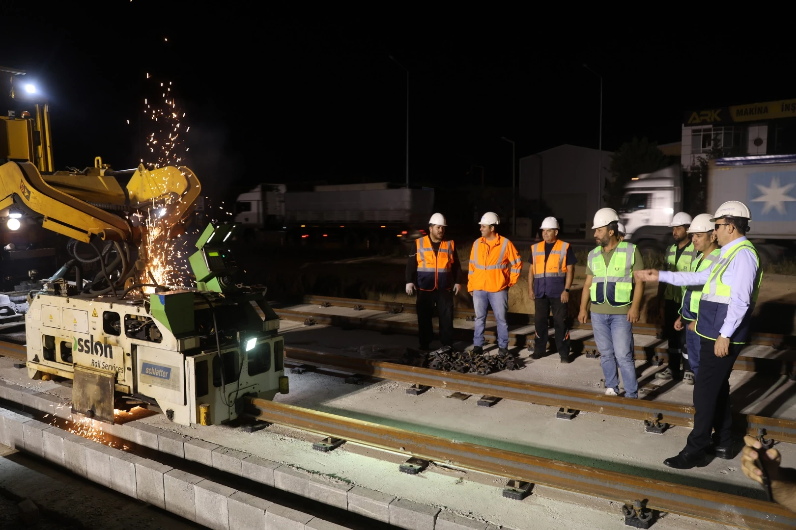 Konya Büyükşehir Belediye Başkanı Uğur İbrahim Altay, dün akşam tramvay hattındaki çalışmalarda incelemelerde bulunarak, montajı tamamlanan rayların birleştirme işlemini takip etti.
