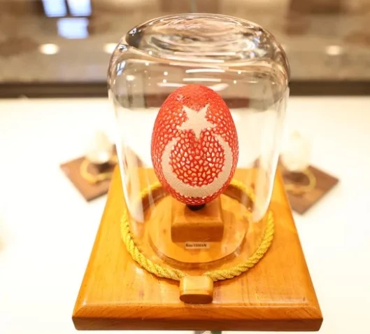 Ahşap ve yumurta kabuğu oyma sanatçısı, Kültür ve Turizm Bakanlığı Somut Olmayan Kültürel Miras Taşıyıcısı Rıza Yaman ile Nahhat Abdullah Şanlı’nın zarif eserlerinden oluşan sergide; sedef kakma, gümüş kakma, ahşap oyma ve yumurta kabuğu oyma sanatının en seçkin örnekleri yer alıyor.