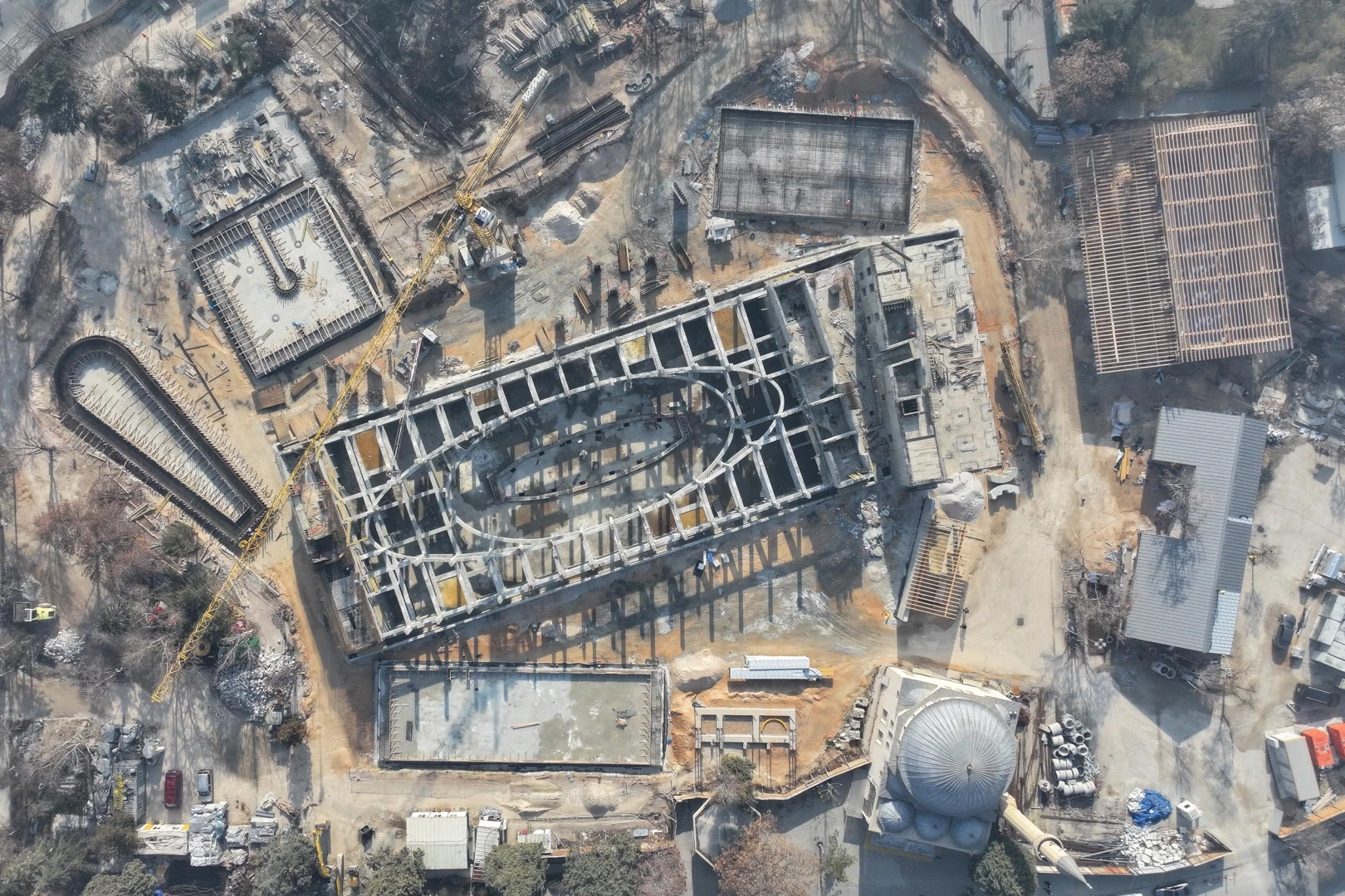 KONYA (İGFA) - Konya Büyükşehir Belediyesi tarafından eski belediye binasının yerinde inşaatı sürdürülen Türkiye’nin ilk Sıfır Karbon binası özelliğine sahip Şehir Kütüphanesi hızla yükseliyor.