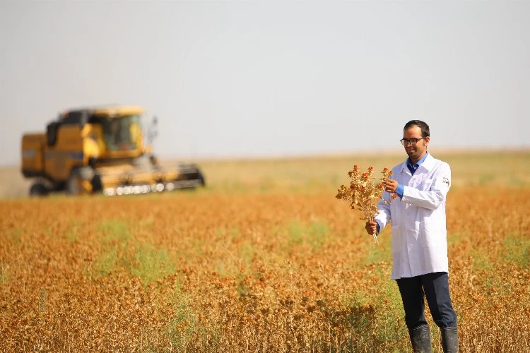 Konya Büyükşehir Belediyesi, Kulu Acıkuyu Mahallesi'nde kendisine ait 800 dekarlık arazide susuz tarım modeliyle üretimini yaptığı yağlık aspir bitkisinin hasadını gerçekleştirdi.