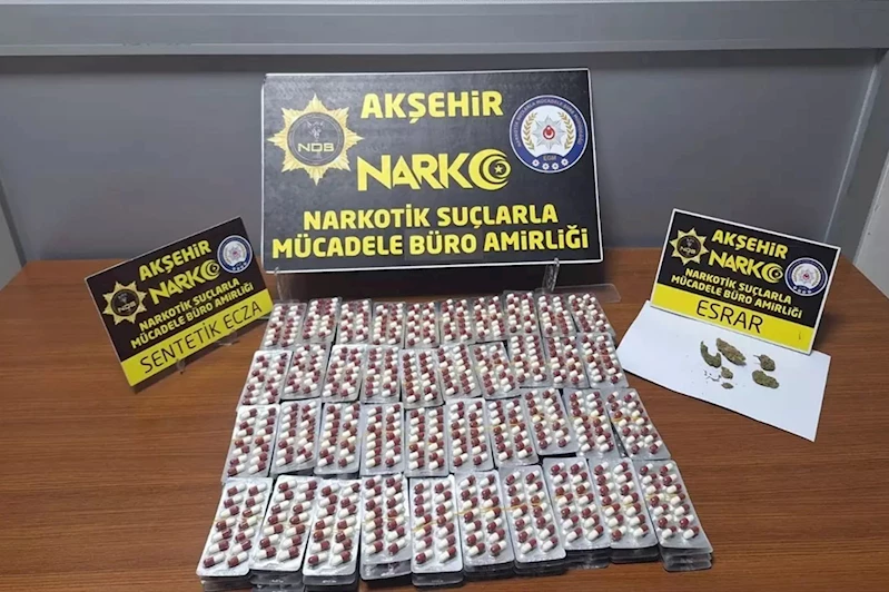 Araçtaki A.O'nun çantasında 2 bin 240 uyuşturucu hap ile 16 gram esrar ele geçirildi.