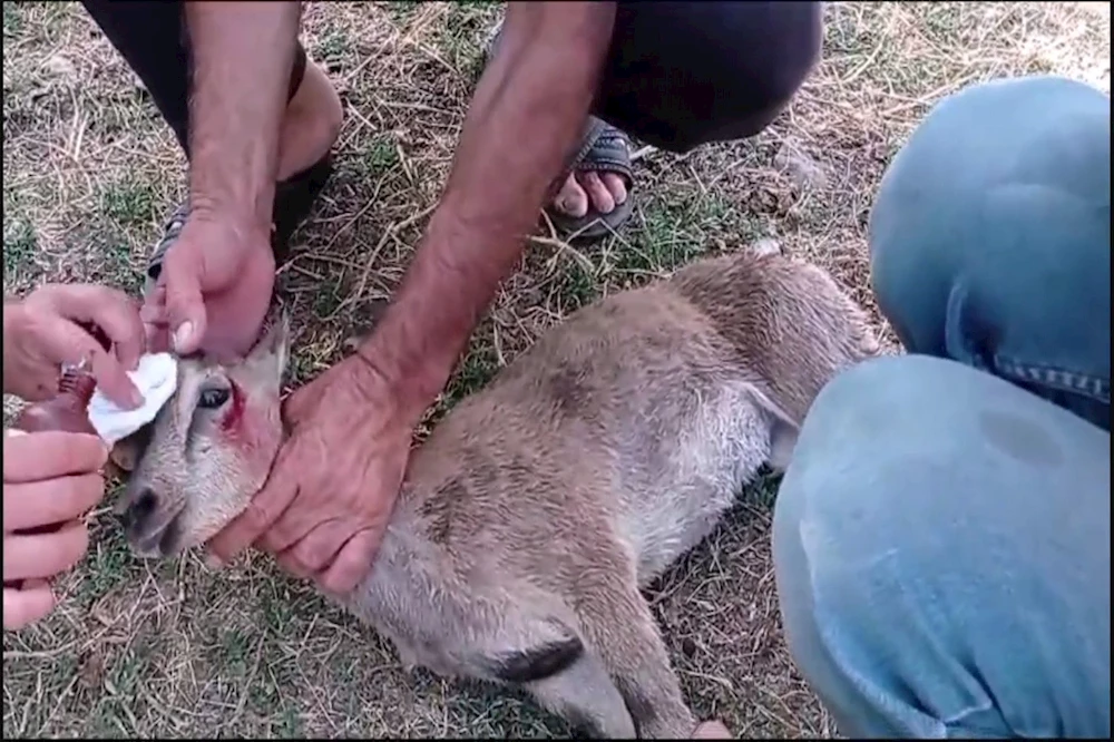 Köpek saldırısına uğrayan yavru dağkeçisine köylüler sahip çıktı