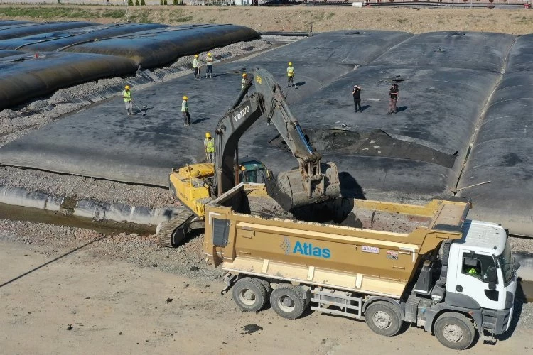 İzmit Körfezi Doğu Baseni Dip Çamuru Temizlenmesi, Susuzlaştırılması ve Bertarafı İşi kapsamında %60 kuruluğa ulaşan geotekstil tüplerdeki çamurun karada bertaraf işlemine başlandı.