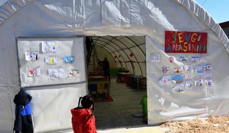 “İlk iş koordinasyon sürecine girdik ve okulları hayata geçirmeye çalıştık. Okulların hayata geçmesi çocukları hem bu ortamdan uzaklaştırmak adına hem de eğlenceli vakit geçirmeleri ve bu süreci daha kolay atlatmaları adına bizim için çok önemliydi. Mehmetçik sağ olsun geldi, okullarımız için yerleri belirledik, okullarımızı kurdular ve öğrencilerimizle beraber oluyorlar. Şu anda bulunduğumuz yerde 3 çadır okulumuz var. Biri anaokulu, diğeri ilkokul ve ortaokul, üçüncüsü de akademik destek çadırımız. Akademik destek çadırları, 12. sınıf seviyelerindeki çocuklarımızın, Milli Eğitim Bakanlığının yardımcı kaynaklarını kullanmak suretiyle sınavlara hazırlık sürecini hem de 8. sınıfa giden çocuklarımızın ortaöğretime geçiş sınavına hazırlanması için sınıflar oluşturduk.”