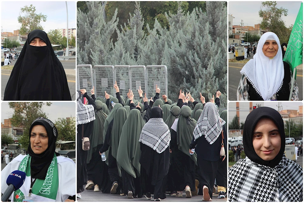 7 Ekim günü İzzeddin Kassam Tugayları tarafından işgalci siyonistlere karşı başlatılan Aksa Tufanı operasyonuna destek vermek için HÜDA PAR tarafından Diyarbakır'da düzenlenen 'Aksa Tufanı'na Destek' mitingine katılan kadınlar, son nefeslerine kadar Kudüs davasının arkasında olduklarını vurguladı.