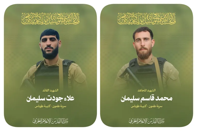 "Şehit Komutanlarımız Alaa Cudat Süleyman ve Muhammed Kasım Süleyman, Tammun'daki kahramanca direnişleriyle şehadete ulaştı. Biz, onların kanıyla yolumuza kararlılıkla devam edeceğiz; cihad ve direniş yolunda sabit kalacağız, ta ki kurtuluş ve dönüş gerçekleşene dek."