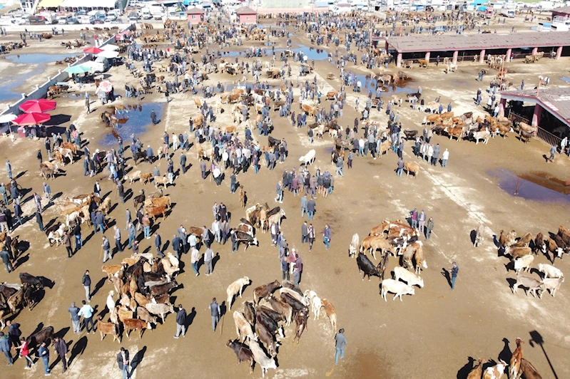 Türkiye'nin önemli hayvan satış noktalarından olan Ağrı Hayvan Borsasında, Kurban Bayramı öncesi yetiştiriciler kurbanlık hayvanlarını satışa sunmaya başladı.