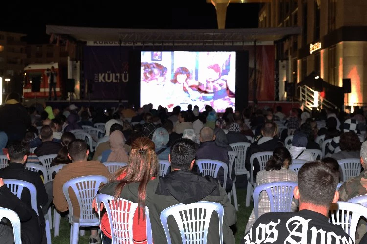 Kütahya Belediyesi tarafından organize edilen açık hava sinemasında vatandaşlar, belediye bahçesinde kurulan dev ekranda Gülen Gözler filmini ilgiyle izledi.