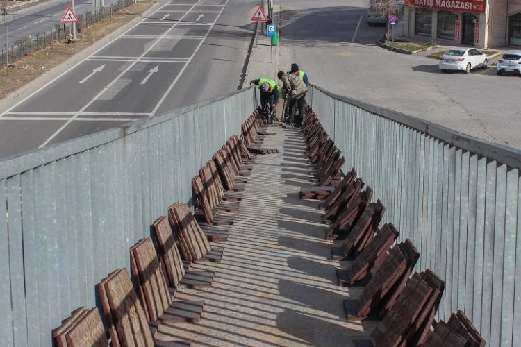 KÜTAHYA (İGFA) - Kütahya Belediyesi Park ve Bahçeler Müdürlüğü ekipleri, hemşehrilerimizin yoğun olarak kullandığı eskimiş, yıpranmış ve engelli erişimine uygun olmayan üst geçitlerdeki kauçukları yenilemeye başladı.
