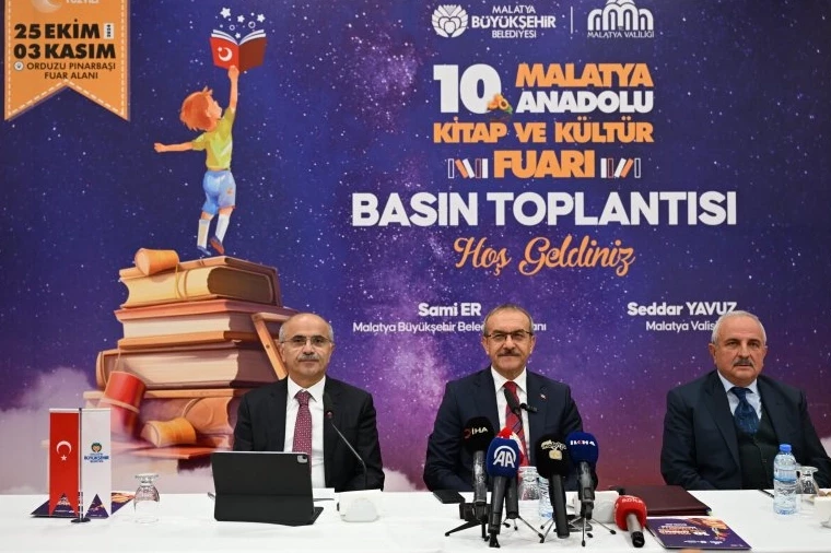 MALATYA (İGFA) - Her yıl yüz binlerce kişinin akın ettiği ve şölen havasında geçen, bu yıl 25 Ekim - 3 Kasım tarihleri arasında kitapseverleri bir arada toplayacak Malatya Anadolu Kitap ve Kültür Fuarı'nın tanıtım toplantısına Malatya Valisi Seddar Yavuz, Malatya Büyükşehir Belediye Başkanı Sami Er, cemiyet ve dernek başkanlarıyla birlikte basın mensupları katıldı.