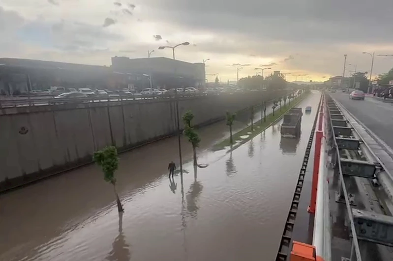 Kent merkezinde öğlenden sonra etkisini gösteren şiddetli yağış nedeniyle birçok alt geçit sular altında kalırken, Emeksiz Caddesi Şehit Üsteğmen Selim Keskinkılıç alt geçidinde bir ticari taksi, mahsur kalarak suya gömüldü.