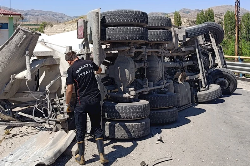 Edinilen bilgilere göre, E.A. idaresindeki 44 AFL 763 plakalı beton mikseri, sürücüsünün direksiyon hakimiyetini kaybetmesi sonucu kontrolden çıkarak yolda devrildi.