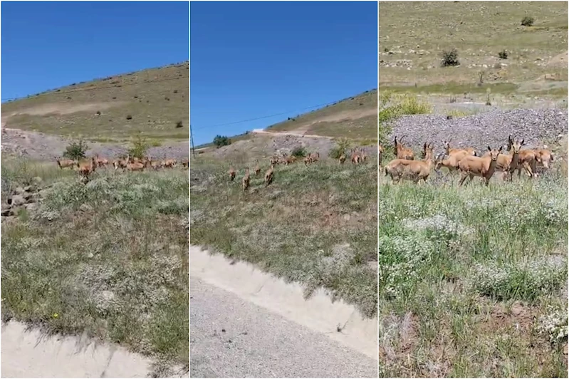 Vatandaşların cep telefonuyla kaydettiği görüntülerde, bir grup dağ keçisinin otlandığı anlar yer aldı. Genellikle insanlardan uzak yüksek kayalıklarda yaşam süren hayvanlarının yol kenarına kadar inmeleri şaşkınlığa neden oldu.
