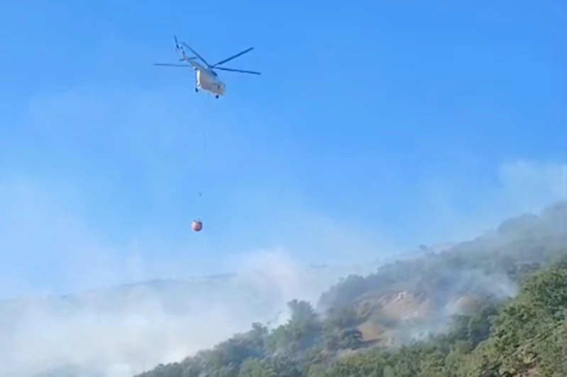 İtfaiye ekiplerinin yanı sıra iş makinaları ve çevredeki vatandaşların da destek verdiği yangın söndürülemeyince çalışmalara, helikopterler de katıldı.
