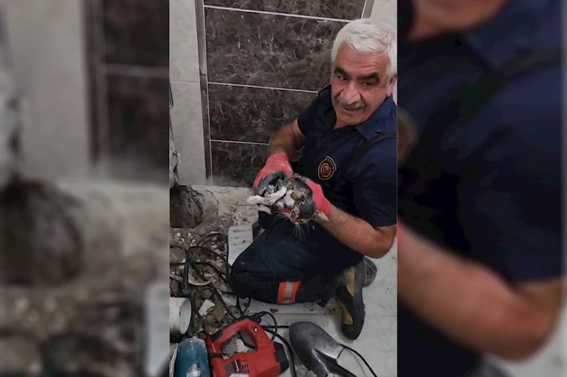 Edinilen bilgiye göre, Çiftlik Sokak'ta bulunan evin sahipleri, gider borusundan kedi seslerini duyunca durumu itfaiye ekiplerine bildirdi.