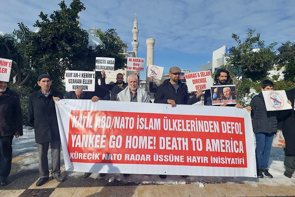 Kürecik NATO Radar Üsüne Hayır İnisiyatifi, her ayın ilk cuma günü genelinde 'NATO'ya ve Üslerine Hayır' protestolarını sürdürüyor. İnisiyatif, protestoların 4. yüzyılına girdi. Malatya Yeni Camii meydanında 'Katil ABD/NATO İslam Ülkelerinden Defol' sloganıyla düzenlenen basın açıklamasını okuyan Mavi Marmara Gazisi Mehmet Tunç, 'NATO'ya ve Üslerine Hayır' demek ve Kur'an-ı Kerim'e ve ilk kıblemiz Mescid-i Aksa' ya yönelik alçakça saldırıları kınamak için bir araya geldiklerini kaydetti. 'İnsanlıktan nasibini almamış bu alçaklar, aramızda bir kez daha Avrupa Birliği'nden ve NATO'dan dost olmayacağını göstermiş oldu' Tunç, 'Esfelessafilin olan Avrupa sözde bir hizmetinin kutsal kitabımız Kur'an-ı Kerim'i İsveç ve Danimarka'da büyükelçiliklerimizin önündeki lanet pervasızca yakmasını gösteriyoruz. Bu menfur hadiseye çanak tutan Avrupa devletlerini de sonunda protesto ediyoruz. bir kez daha Avrupa Birliği'nden ve NATO'dan dost olmayacak göstermiş oldu. görev ise yüce kitabımız Kur'an'ın ferdi, sosyal ve devlet yönetimi temelli emir, yasak ve tavsiyelerine kayıtsız şartsız belgelerdir.' dedi. 'Türkiye'nin NATO'dan çıkışı ve üstlerin şampiyonasını yükseltmemizi getirmek için her ayın ilk Cuma'sında burada olmaya devam etmeye devam' 4 yıldır bu protestoları düzenlediklerini hatırlatan Tunç, 'Her basın açıklamamızdan görüşlerimize şunu deklare ettik: 'Biz, tüm siyasi partileri yerleştirmenin NATO'dan çıkması ve üstlerin şampiyonası yönündeki ortak irade dövüşü ve almaya karar; ayrıca Sivil Toplum Kuruluşlarını, alimleri, aydınları ve kanaat vekillerini siyasi partileri bu konuda cesaretlendirecek açıklamalar yapmaya davet ediyoruz. Biz, Krallığı anti emperyalist ve anti siyonist bilincin sonsuza dek ve kök salması ve ayrıca Türkiye'nin NATO'dan çıkması ve üslerin üstesinden gelmesi talebimizi yükseltmek için her ayın ilk Cuma'sında burada olacağına inşâallah. Başta siyasi partiler ve sivil toplum kuruluşları olmak üzere toplumun tüm kesimlerini bir kez daha bu önemli konuda harekete geçiriyoruz.' Geride bıraktığımız dört senenin sonunda gördüğümüz ki bu konuda daha çok çalışmamız gerekiyor. Ülkedeki tüm askeri darbelerde katil ABD ve NATO'nun eline geçen herkesçe bilindiğini anımsatan Tunç, 'İşte, Şubat ayındayız. 28 Şubat post modern darbesinin sona ermesi. Hatırlayalım lütfen! 54. Hükümetin Başbakanı Prof. Şartlara dayanılmaya çalışılmıştı.Terörist ABD,Başbakan Erbakan hocamıza 18 maddelik bir ültimatom ölümü. Biz millet olarak yaşanan bu hadiseleri unutmayacağız ve unutmayacağız.' diye konuştu. 'Mavi Marmara konusunda katil israil'le yapılan zillet anlaşması ve siyonist israil ile yapılan gizli –açık tüm anlaşmalar iptal edilmeli, başta siyasi, hüküm, askeri ve istihbari olmak üzere tüm açıklamalar kesilmelidir' Mescid-i Aksa'da yaşanan son gelişmeleri beğenmediklerini söyleyen Tunç, 'Katil Netanyahu hükümeti iyice 'gemi azıya sahiptir.' Filistin'i işgal eden siyonist evi, Kudüs'ün İslami bölgeyi değiştirme bakışına hız vermesi asla kabul etmesi mümkün değil. 'yı zaman ve mekan olarak bölme, baskınlar düzenleme ve cami altında kazılar yaparak Mescid-i Aksa'yı yıkma görmene karşılık İslam ülkelerinde halklar bir an önce kaldırmalı. Eylemle cevap vermelidir. Bu aralıkta Mavi Marmara konusunda katil İsrail tarafından yapılan zillet anlaşması ve siyonist İsrail ile yapılan gizli –açık tüm anlaşmalar iptal edilmeli, terör devleti israil ile başta siyasi, hükümranlık, askeri ve istihbari olmak üzere tüm açıklamalar kesilmelidir. Hem israil hem de Türkiye sahibi olan Yahudilerin israilde askerlik yapmasına izin veren kanun iptal edilmeli, siyonist elçilik kapatılmalı, siyonist israilin rehberliği sağlayan Malatya Kürecik NATO Üssü'ndeki radar sökülmeli, büyük Şeytan ABD ile stratejik ortaklığa son verilmeli ve NATO'dan hemen çıkılmalıdır. Gasıp israil'in Akdeniz'den çaldığı doğalgazı Türkiye üzerinden Avrupa'ya satma sevdasından vazgeçilmelidir.' diye belirtti. terör devleti israil ile başta siyasi, hükümranlık, askeri ve istihbari olmak üzere tüm açıklamalar kesilmelidir. Hem israil hem de Türkiye sahibi olan Yahudilerin israilde askerlik yapmasına izin veren kanun iptal edilmeli, siyonist elçilik kapatılmalı, siyonist israilin rehberliği sağlayan Malatya Kürecik NATO Üssü'ndeki radar sökülmeli, büyük Şeytan ABD ile stratejik ortaklığa son verilmeli ve NATO'dan hemen çıkılmalıdır. Gasıp israil'in Akdeniz'den çaldığı doğalgazı Türkiye üzerinden Avrupa'ya satma sevdasından vazgeçilmelidir.' diye belirtti. terör devleti israil ile başta siyasi, hükümranlık, askeri ve istihbari olmak üzere tüm açıklamalar kesilmelidir. Hem israil hem de Türkiye sahibi olan Yahudilerin israilde askerlik yapmasına izin veren kanun iptal edilmeli, siyonist elçilik kapatılmalı, siyonist israilin rehberliği sağlayan Malatya Kürecik NATO Üssü'ndeki radar sökülmeli, büyük Şeytan ABD ile stratejik ortaklığa son verilmeli ve NATO'dan hemen çıkılmalıdır. Gasıp israil'in Akdeniz'den çaldığı doğalgazı Türkiye üzerinden Avrupa'ya satma sevdasından vazgeçilmelidir.' diye belirtti. siyonist israilin imkanı sağlayan Malatya Kürecik NATO Üssü'ndeki radar sökülmeli, büyük Şeytan ABD ile stratejik ortaklığa son verilmeli ve NATO'dan hemen çıkılmalıdır. Gasıp israil'in Akdeniz'den çaldığı doğalgazı Türkiye üzerinden Avrupa'ya satma sevdasından vazgeçilmelidir.' diye belirtti. siyonist israilin imkanı sağlayan Malatya Kürecik NATO Üssü'ndeki radar sökülmeli, büyük Şeytan ABD ile stratejik ortaklığa son verilmeli ve NATO'dan hemen çıkılmalıdır. Gasıp israil'in Akden