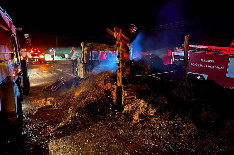 Malatya'nın Arguvan ilçesi Parcikan Mahallesi, Malatya-Arapkir karayolu üzerinde seyir halindeki yonca yüklü bir pikapta, henüz belirlenemeyen bir nedenden dolayı yangın çıktı.