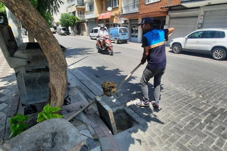 Çalışmalar kapsamında yağmur suyu ızgaralarının iç kısımlarındaki katı atıklar ve çöpler temizlenerek taşkınlara karşı önlem alınıyor.