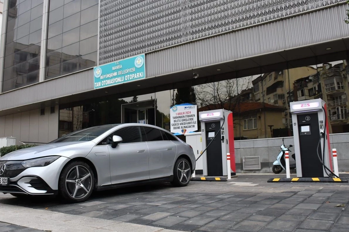 MANİSA (İGFA) - Manisa Enerji A.Ş. tarafından, yer alan Tam Otomasyonlu Otopark girişine iki adet elektrikli araç şarj istasyonu kurularak yurttaşların hizmetine sunuldu.