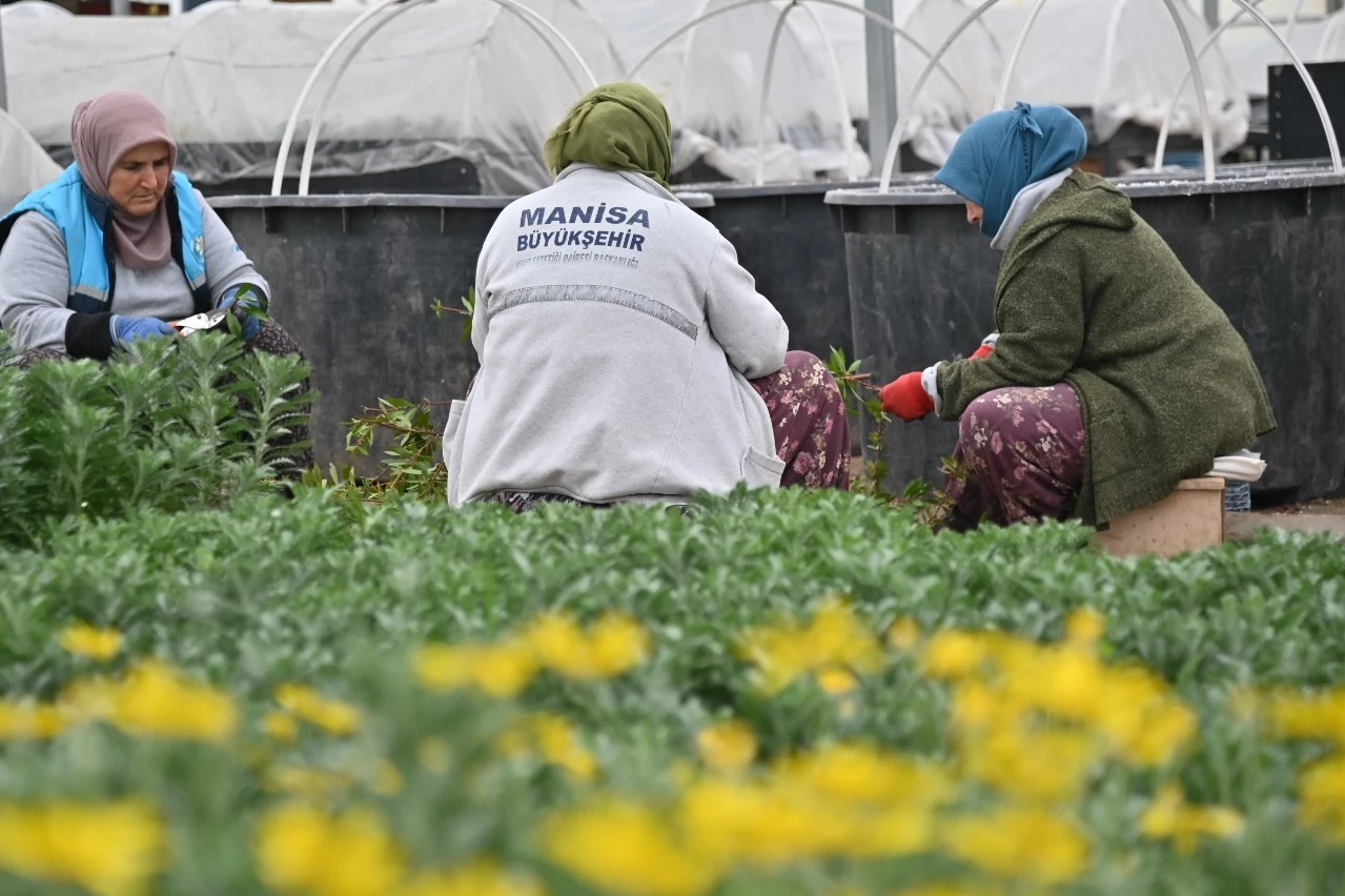 MANİSA (İGFA) - Kurakçıl peyzaj tasarımlarına yönelen Büyükşehir, 50 bin metrekarelik Süs Bitkileri Üretim Tesisinde ürettiği bitkileri 17 ilçeye dağıtarak, şehrin tamamında kullanılmasını sağlıyor.