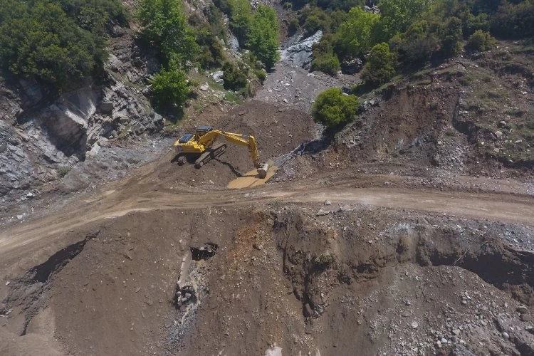 Heyelan yaşanan bölgede çalışmalarını sürdüren ekipler, kontrollü bir şekilde yolu ulaşıma açtı.