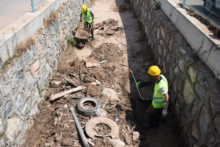 Sel sularının kısa sürede tahliye edildiği ilçede su baskınına neden olan dere yataklarında da incelemelerde bulunulurken MASKİ ekipleri dere yataklarını temizlemeye devam ediyor.