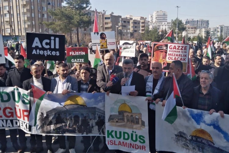 Mardin’de sivil toplum kuruluşları, Cuma namazı çıkışı İsrail'i protesto ederek, Gazze halkına uygulanan soykırıma dikkat çekti.