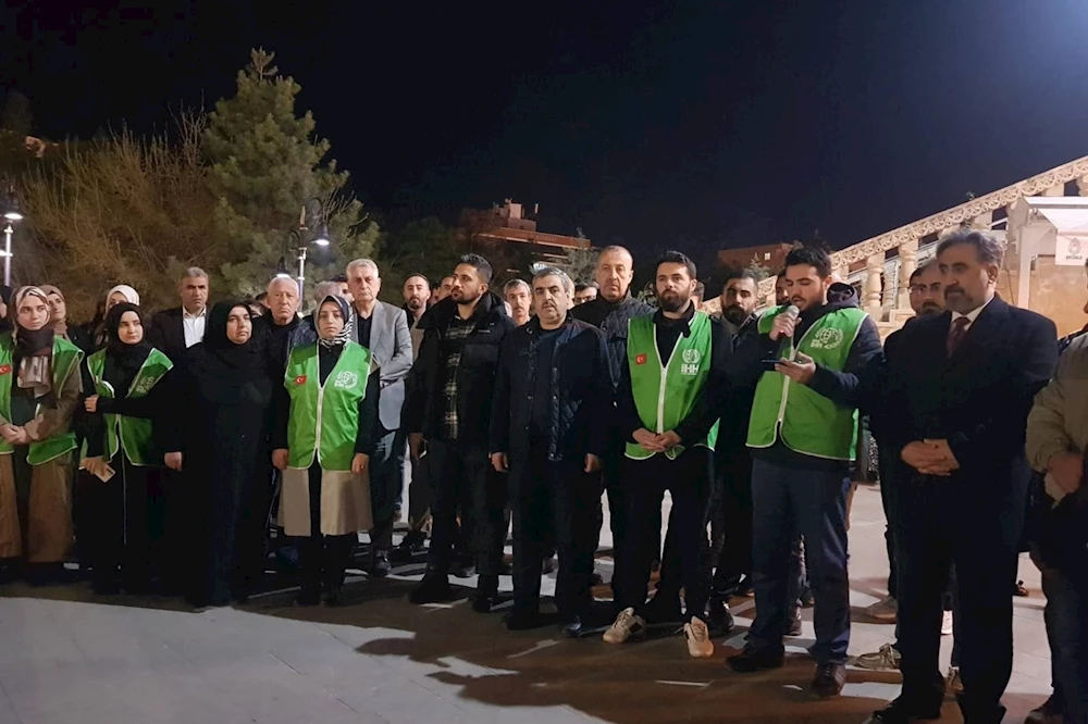 İşgal yapısının Ramazan'da Filistinlilere yönelik Mescid-i Aksa'ya yaptığı saldırılara tepki göstermek amacıyla Mardin Şakir Nuhoğlu Camii önünde teravih namazı sonrası kitlesel basın anlatımı düzenlendi.
