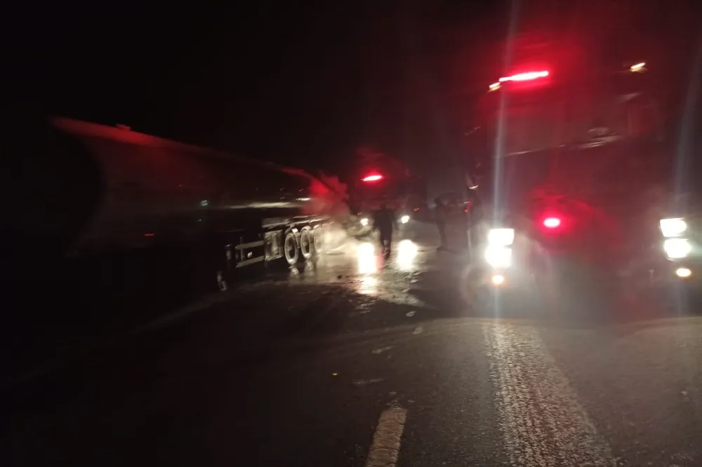 Sürücünün alevleri fark etmesi üzerine yolun sağına çekerek, çekici kupa kısmını yanma ihtimali üzerine tankerden ayırdı.