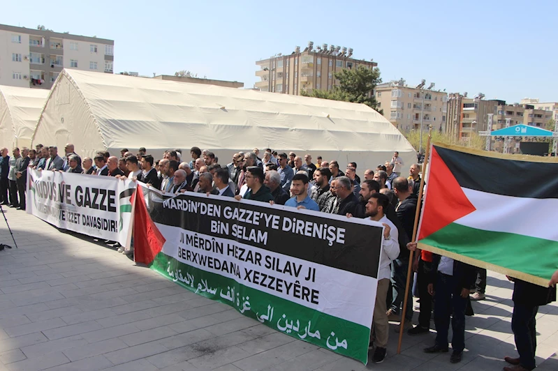 Turan, Kudüs’ün sadece Filistin’in değil tüm İslam âleminin ortak davası olduğunu belirterek, “Malumunuz olduğu üzere her Ramazan ayının son cuma günü, İslam dünyasında ‘Dünya Kudüs Günü’ olarak kabul edilmekte ve Müslümanlar bu günde Kudüs davasını bir kez daha hatırlamakta ve hatırlatmaktadır. Bizler de Mardin halkı ve STK’lar olarak bu anlamlı günün idraki içinde, Kudüs’ün siyonist israil işgalinden kurtulması ve özgürlüğüne kavuşması için bir araya gelmiş bulunuyoruz. Kudüs, sadece bir şehir değildir; Kudüs, inancımızın, tarihimizin ve medeniyetimizin en önemli yapı taşlarından biridir. Mescid-i Aksa, Müslümanların ilk kıblesi, peygamberlerin miras bıraktığı kutsal bir emanettir. Ancak ne yazık ki Mescid-i Aksa ve Filistin toprakları, 1917 yılında İngilizler tarafından işgal edilmiş, 1948’den beri ise siyonist israilin zulmü altında tutsak edilmiştir. İngilizlerin işgaline göz yuman, destek veren ve Filistin topraklarını işgalcilere peşkeş çeken küresel güçler, bugün de israili himaye etmeye devam etmektedir.” şeklinde konuştu.