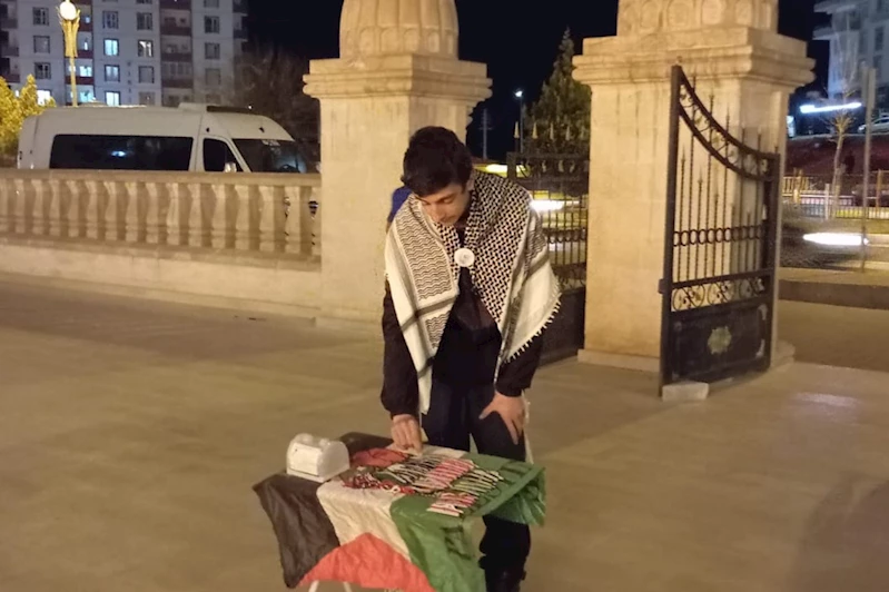 Mardin’in Artuklu ilçesinde ikamet eden Yahya Önen adlı genç, Nassar Tıp Hastanesi’nin diyaliz bölümü yararına teravih çıkışı Filistin temalı eşyalar sattı.