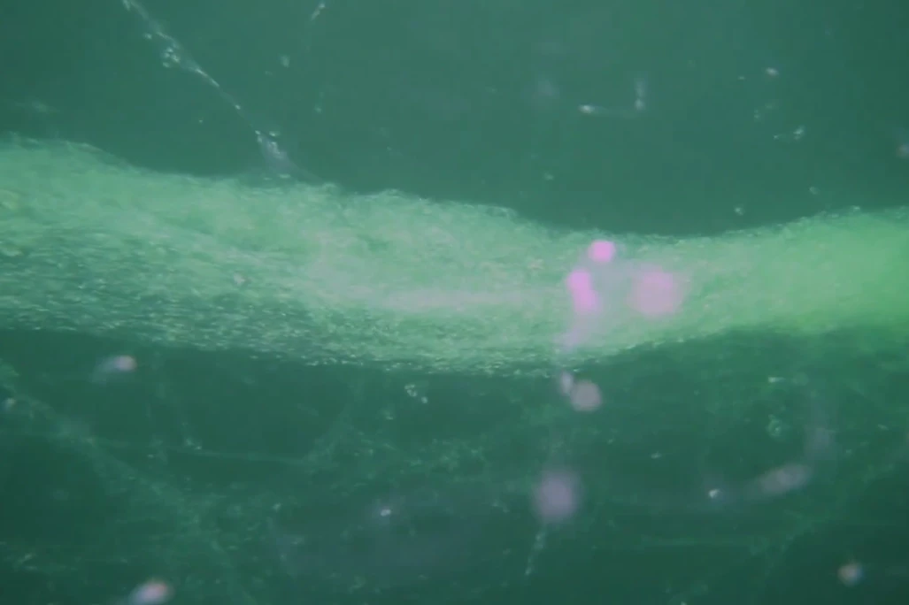 7 Mayıs 2025’te Sedef Adası’nın doğusunda çekilen görüntülerde, müsilajın yüzeyden başlayarak 12-18 metre derinlikte göz gözü görmeyecek kadar yoğun kümelere dönüştüğü, 44 metredeki deniz kalemlerini sardığı görüldü.