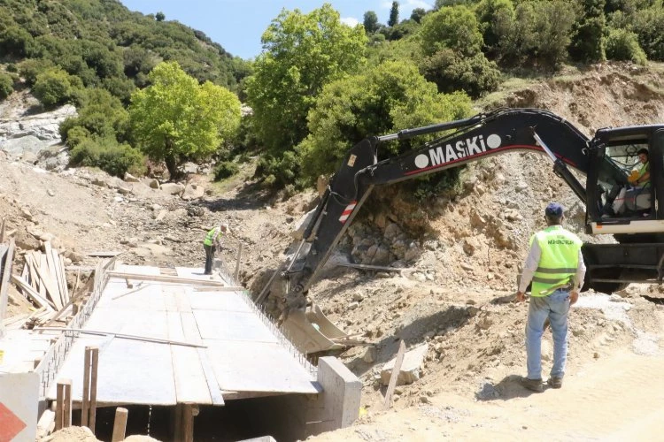 Manisa Sarıgöl ilçesinde yaşanan aşırı yağışların ardından heyelanda zarar gören Şeyhdavutlar ve Güneydamlarını ilçe merkezine bağlayan yolda çalışmalar sürüyor.