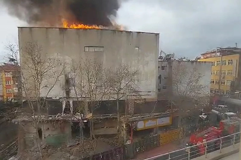 Edinilen bilgilere göre yıkım için daha önce boşaltılan binanın yıkım işlemleri sırasında yangın çıktı.