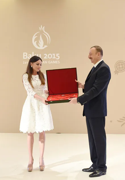 | Mehriban Aliyeva , Azerbaycan Cumhuriyeti'nde kültür, eğitim, sağlık ve sporun geliştirilmesine yönelik etkin faaliyetleri , Azerbaycan halkının kültürel mirasının uluslararası ölçekte geniş çapta tanıtılması ve uluslararası ölçekteki çalışmaları nedeniyle "Haydar Aliyev" nişanına layık görüldü. İlk Avrupa Oyunlarının düzenlenmesinde büyük hizmetleri vardı. |