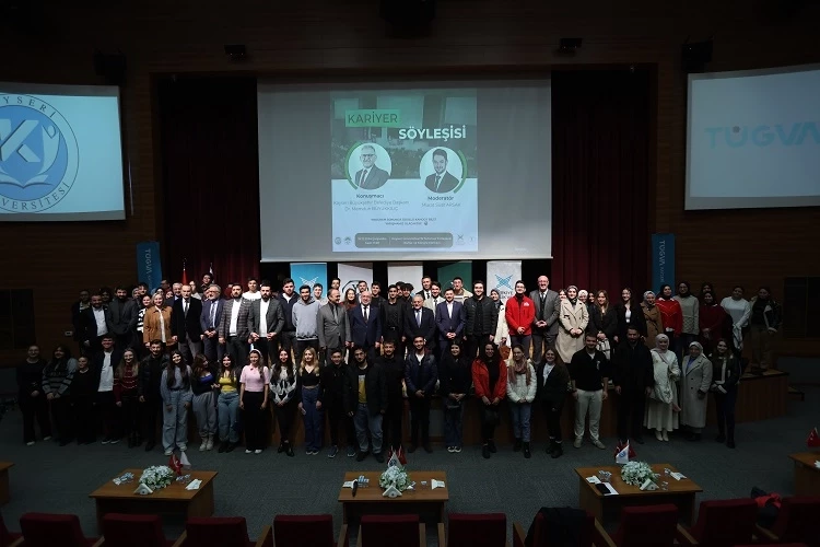 KAYSERİ (İGFA) - Kayseri Büyükşehir Belediye Başkanı Dr. Memduh Büyükkılıç, Kayseri Üniversitesi 15 Temmuz Yerleşkesi Kültür ve Kongre Merkezi’nde gerçekleşen Kariyer Söyleşisi programına konuşmacı olarak katılırken, programın moderatörlüğünü Murat Suat Arsav yaptı.