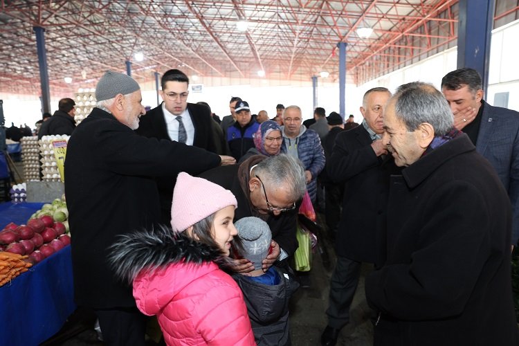 Pazarda alışveriş yapan, karşılaştığı çocuklarla yakından ilgilenen Büyükkılıç, vatandaşlarla hatıra fotoğrafı çektirmeyi de ihmal etmedi.