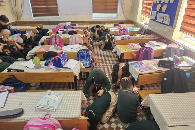 İkinci siren sesinin ardından öğretmenlerin rehberliğinde öğrenciler, düzenli bir şekilde okul bahçesine tahliye edildi.