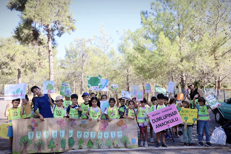 Çevre bilincini pekiştirmek amacıyla resim kartlarıyla yapılan anlatımların ardından minikler, ormanda mıntıka temizliği yaparak öğrendiklerini uyguladı.