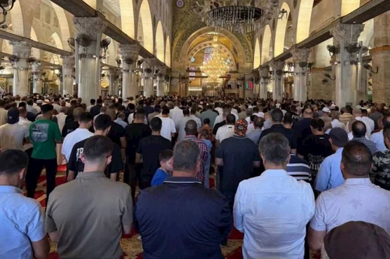 Kudüs İslami Vakıflar Dairesi, yaklaşık 50 bin kişinin cuma namazını Aksa'da kıldığını ve Gazze ile Batı Şeria'da şehit düşenler için gıyabi cenaze namazı eda edildiğini açıkladı.