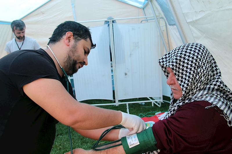 Alanda olabilecek sağlık sorunları için birçok çadır kurularak çok sayıda gönüllü sağlık çalışanı hazır bulundu