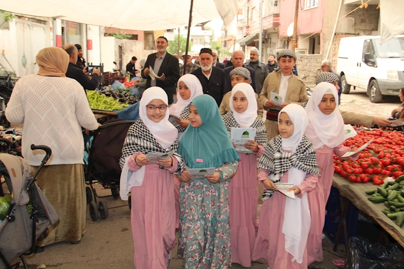 Direniş Önderi Hazreti Muhammed (sallallahu aleyhi vesellem) Temalı etkinlik öncesinde, yöresel kıyafetler giymiş küçük kız ve erkek çocukları ile gönüllüler, erbane eşliğinde ilahiler söyleyerek semt pazarı esnafına ve vatandaşlara el broşürleri dağıttılar.